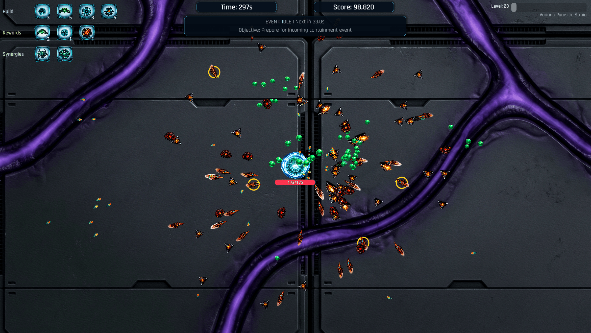 Harvest biomass, evolve your organism, and outscale the lab’s defenses before Protocol OMEGA locks you down for good.